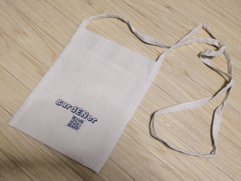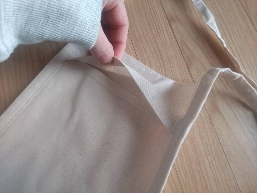 素材はコットン、表側はスマホや財布を、裏側はポケットティッシュなどを。